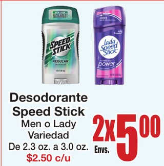 Desodorante Speed Stick Men o Lady Variedad De 2.3 oz. a 3.0 oz.