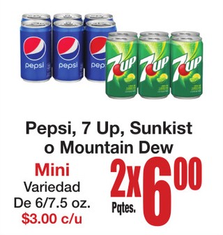 Pepsi, 7 Up, Sunkist o Mountain Dew Mini Variedad De 6/7.5 oz.