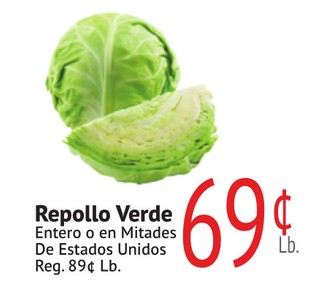 Repollo Verde Entero o en Mitades De Estados Unidos