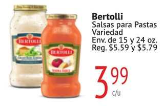 Bertolli Salsa para Pastas Variedad Env. de 15 y 24 oz.