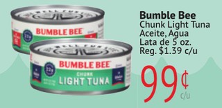 Bumblee Bee Chunk Light Tuna Aceite, Agua Lata de 5 oz.