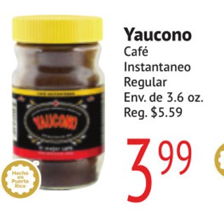 Yaucono cafe instantaneo regular env. de 3.6 oz.