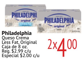 Philadelphia Queso Crema Less Fat, Original Caja de 8 oz.