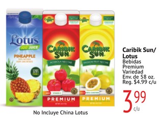 Caribik Sun/ Lotus Bebidas Premium Variedad Env. de 58 oz.