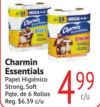 Charmin Essentials Papel Higiénico Strong, Soft Pqte. de 6 Rollos.