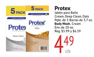 Protex Jabón para Baño Cream, Deep Clean, Oats Pqte. de 5 Barras de 3.7 oz. Body Wash. Cream Env. de 20 oz.
