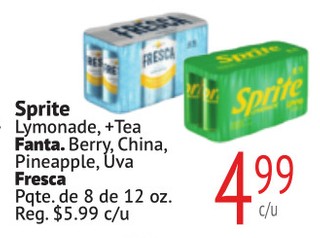 Sprite Lymonade, +Tea Fanta. Berry, China, Pineapple, Úva Fresca Pqte. de 8 de 12 oz.