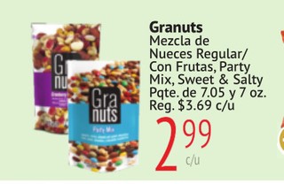 Granuts Mezcla de Nueces Regular/Con Frutas, Party Mix, Sweet & Salty Pqte. de 7.05 y 7 oz.