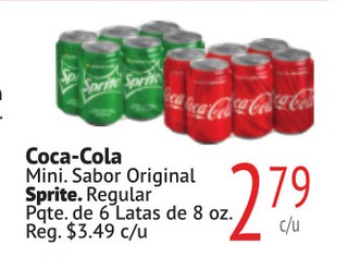 Coca-Cola Mini. Sabor Original Sprite. Regular Pqte. de 6 Latas de 8 oz.
