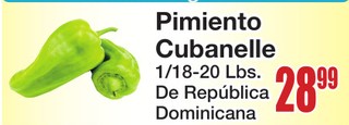 Pimiento Cubanelle 1/18-20 Lbs De Republica Dominicana