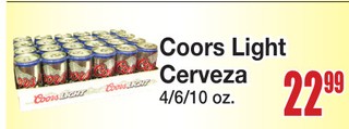 Coors Light Cerveza 4/6/10 oz.