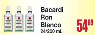 Bacardi Ron Blanco 24/200 ml.