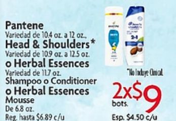 pantene variedad head shoulders* herbal essences shampoo conditioner mousse reg. $c/u ladye clinical x$bots. esp.