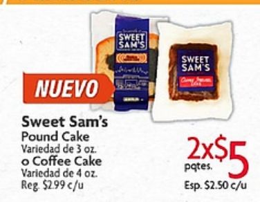 sweet sam's pound cake variedad coffee reg. $c/u x$pqtes. esp.