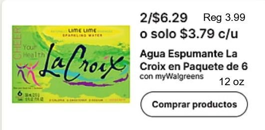 your health lime jafrove /$reg $c/u agua espumante croix paquete mywalgreens comprar productos