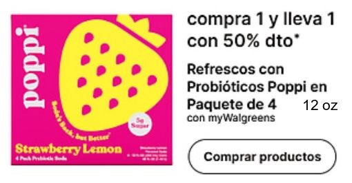 poppi strawberry lemon compra dto' refrescos probióticos paquete mywalgreens comprar productos