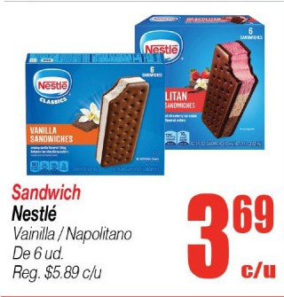 Sandwich Nestlé Vainilla / Napolitano De 6 ud.