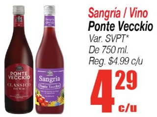Sangria/ Vino Ponte Vecckio Var. SVPT* De 750ml.