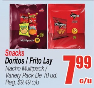 Snacks Dotiros/ Frito Lay Nacho Multipack/ Variety Pack De 10 ud.