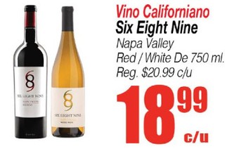 Vino Californiano Six Eight Nine NApa Valley Red/ White de 750 ml.
