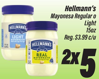 HELLMANN´S Mayonesa Regular o Light 15oz