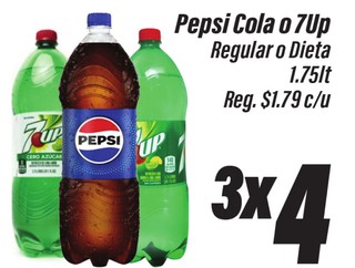 Pepsi Cola o 7Up Regular o Dieta 1.75lt