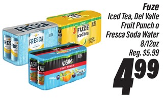 Fuze Iced Tea, Del Valle Fruit Punch o Fresca Soda Water 8/12oz