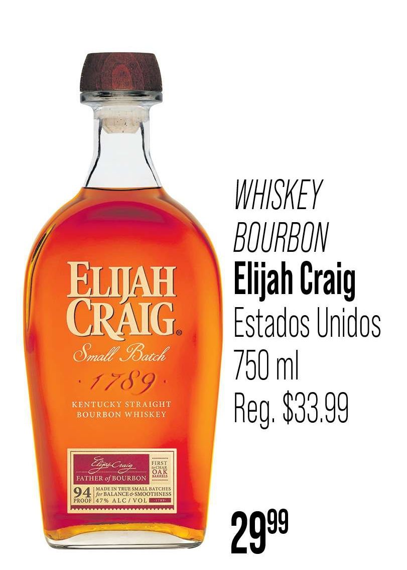 whiskey bourbon elijah craig small batch kentucky straight elijas-craig father first char barrels made true batches balance smoothness proof alc/vol lekar unidos
