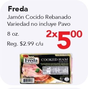 freda jamón cocido rebanado variedad incluye pavo reg. $c/u xfreda cooked