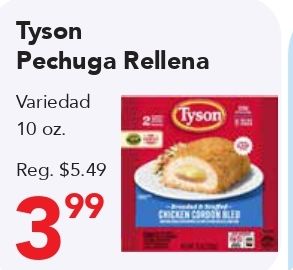 tyson pechuga rellena variedad reg. $tyson chicken cordon
