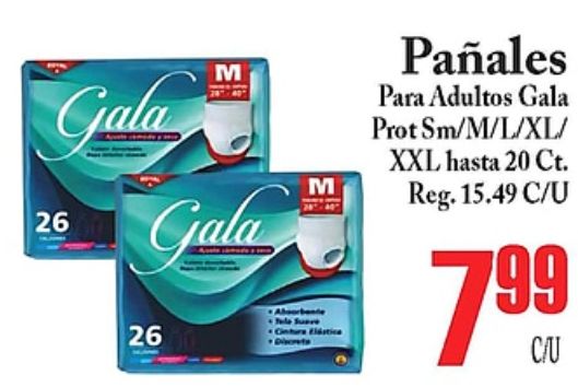 gala absorbente tele suave cinture elástica pañales adultos prot sm/m/l/xl/ reg.