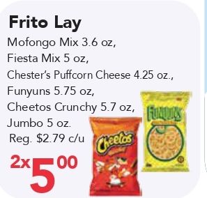 frito mofongo fiesta chester's puffcorn cheese funyuns cheetos crunchy jumbo reg. $c/u xcheetos
