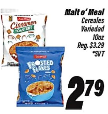 malt meal cinnamon cereales toasters variedad $*svt frosted flakes