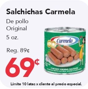 salchichas carmela pollo original reg. lĂmite latas cliente precio especial.
