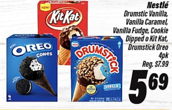 kitkat oreo cones drum nestlé drumstic vanilla caramel, fudge, cookie dipped kat, drumstick