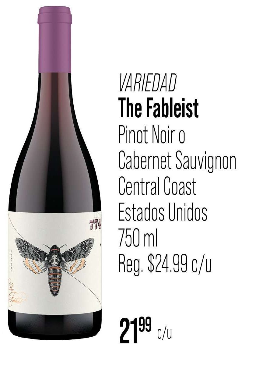variedad fableist pinot noir cabernet sauvignon central coast unidos $c/u