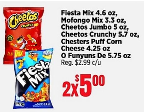 cheetos crunchy fiest fiesta mofongo jumbo chesters puff corn cheese funyuns $c/u
