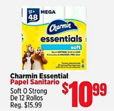 charmin essentials: soft essential papel sanitario strong rollos $$⁹⁹