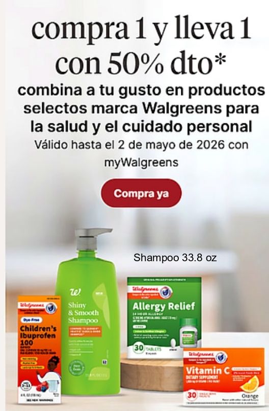 compra dto* combina gusto productos selectos marca walgreens salud cuidado personal vĂ¡lido mayo mywalgreens shampoo cys-fire children's ibuprofen shiny smooth allergy relief vitamin detary supplement orange