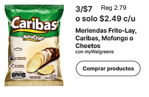 caribas natuchips /$reg $c/u meriendas frito-lay caribas, mofongo cheetos mywalgreens bars comprar productos