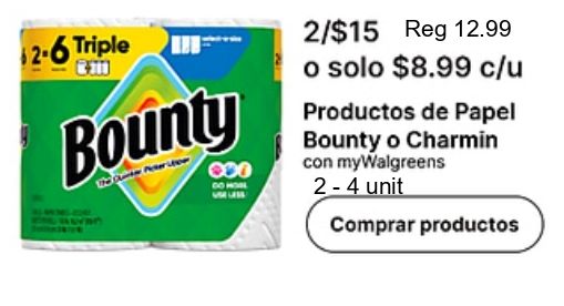 triple bounty /$reg $c/u productos papel charmin mywalgreens unit comprar