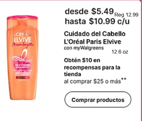 loral elvive doram lengths $reg $c/u cuidado cabello l'oréal paris mywalgreens restoring shampoo obtén recompensas tienda comprar más** productos