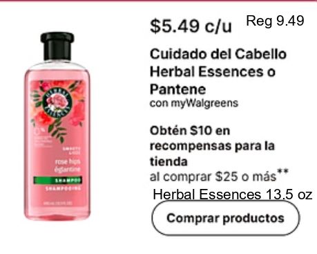 rose hips égantine $c/u cuidado cabello herbal essences pantene mywalgreens obtén recompensas tienda comprar más* productos