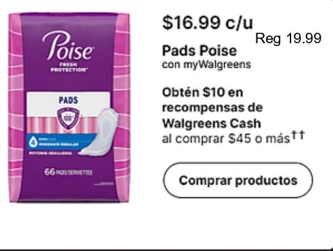 poise protection pads $c/u mywalgreens obtén recompensas walgreens cash comprar más** productos