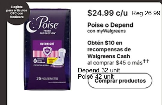 elegible articulos medicare poise prote overnight porvettes $c/u depend mywalgreens obtén recompensas walgreens cash comprar más⭑t unit productos