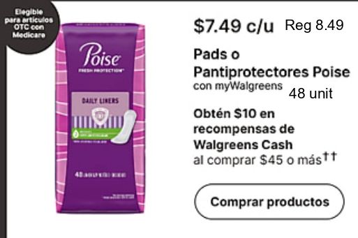 elegible articulos medicare poise daily liners $c/u pads pantiprotectores mywalgreens obtén unit recompensas walgreens cash comprar más⭑t productos