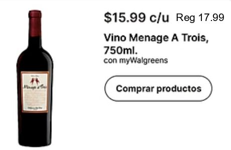 $c/u vino menage trois mywalgreens comprar productos