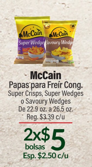 McCain Papa para Freir Sugar Crisps, Super Wedges o Savoury Wedges De 22.9 oz a 26.5 oz.