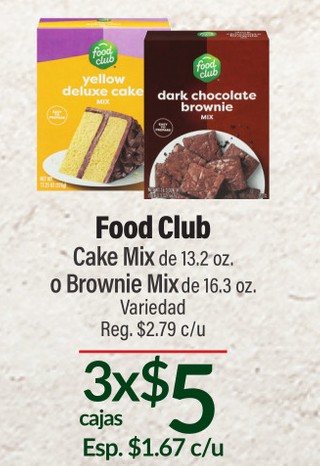 Food Club Cake Mix de 13.2 oz. o Brownie Mix de 16.3 oz. Variedad
