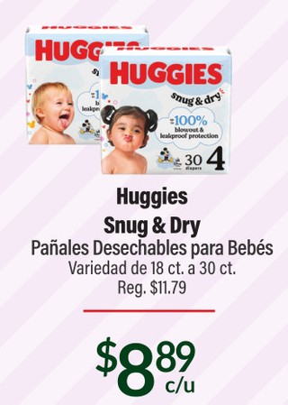Huggies Snug & Dry Pañales Desechables para Bebés Variedad de 18 ct. a 30 ct.